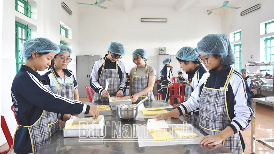 | Giờ thực hành của lớp Kỹ thuật chế biến món ăn, Trường Cao đẳng Kinh tế và Công nghệ Nam Định. |