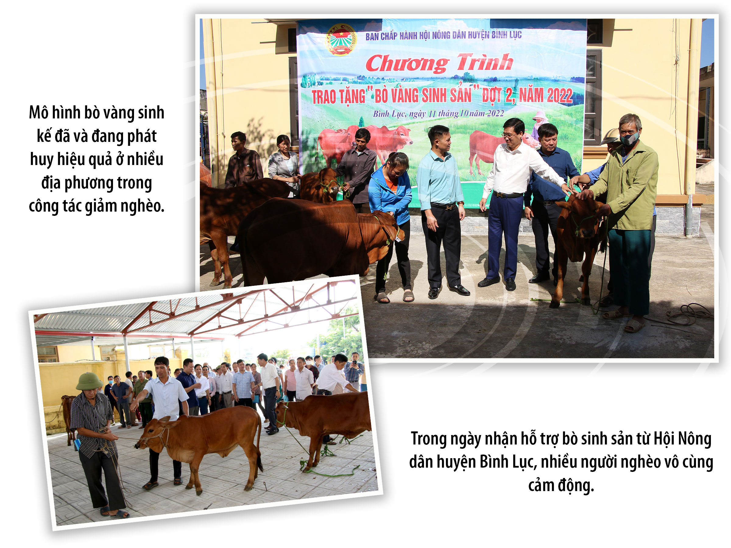 Các mô hình, dự án giảm nghèo tiếp tục được triển khai hiệu quả trong giai đoạn mới như: nuôi bò vàng sinh sản, nuôi gà, gia cầm... đã phát huy hiệu quả thiết thực, tạo sinh kế, tăng thu nhập, làm cho người dân có việc làm ổn định. Những xã như: Nhân Thịnh, Hợp Lý, Chân Lý, Xuân Khê, Trần Hưng Đạo (huyện Lý Nhân); Trịnh Xá, Tiên Hải (TP Phủ Lý); xã Thanh Hải (huyện Thanh Liêm); xã Vũ Bản (huyện Bình Lục), đã có gần 200 hộ nghèo được hỗ trợ bò để tạo sinh kế với số tiền ngân sách Nhà nước hỗ trợ dành cho mỗi xã 300 triệu đồng/năm. Tổng kinh phí thực hiện 10 dự án phát triển đa dạng hóa sinh kế giảm nghèo do Sở Nông nghiệp và Phát triển nông thôn thực hiện với tổng kinh phí 1,5 tỷ đồng và 4 mô hình nhân rộng về giảm nghèo do Sở LĐ-TB&XH thực hiện với tổng kinh phí 1,2 tỷ đồng trong hai năm 2018-2019 đã đáp ứng yêu cầu đề ra trong kế hoạch, phát huy được hiệu quả, giúp các hộ dân tham gia có điều kiện vươn lên thoát nghèo. Tỷ lệ hộ nghèo toàn tỉnh giai đoạn này giảm từ 5,81% xuống còn 1,84%. Tỷ lệ hộ cận nghèo giảm từ 4,8% xuống còn 2,74%.