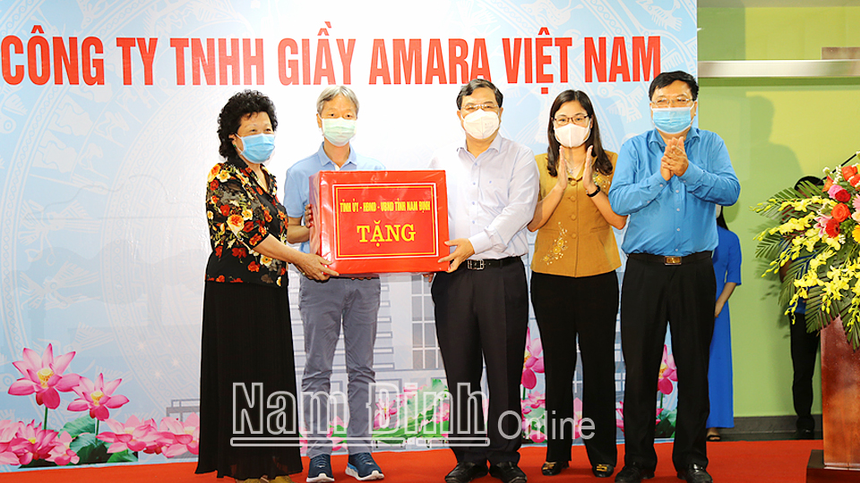 Nhân dịp này, đồng chí Bí Thư Tỉnh ủy Phạm Gia Túc đã đi thăm, động viên cán bộ, công nhân viên, người lao động tại Công ty TNHH Giày AMARA Việt Nam, thị trấn Cổ Lễ (Trực Ninh). Cùng đi có đồng chí Trần Minh Thắng, Ủy viên Ban TVTU, Trưởng Ban Dân vận Tỉnh ủy; Hà Lan Anh, TUV, Phó Chủ tịch UBND tỉnh; lãnh đạo Huyện ủy, UBND huyện Trực Ninh. Đồng chí Bí thư Tỉnh ủy đã biểu dương những cố gắng trong hoạt động sản xuất, kinh doanh của Công ty, nhất là trong thời kỳ dịch bệnh COVID-19 diễn biến phức tạp đã không ngừng cố gắng để đảm bảo việc làm, ổn định thu nhập cho người lao động. Thời gian tới, Công ty cần tiếp tục thực hiện tốt công tác phòng, chống dịch COVID-19, khắc phục khó khăn để duy trì sản xuất ổn định, giải quyết việc làm cho lao động địa phương, quan tâm đến những hoạt động từ thiện xã hội…