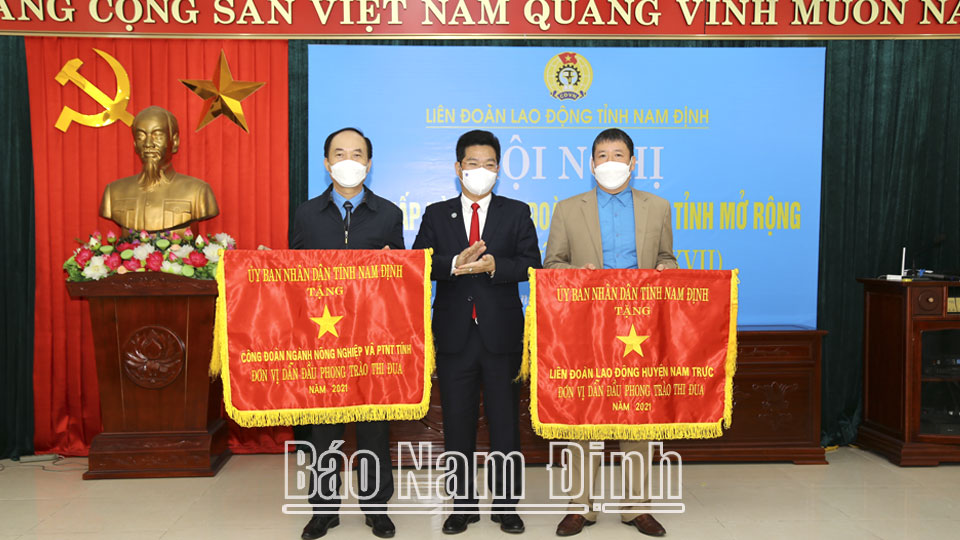 Tại hội nghị, đồng chí Phan Văn Anh, Phó Chủ tịch Tổng LĐLĐ Việt Nam trao tặng Kỷ niệm chương Vì sự nghiệp Công đoàn cho 2 cá nhân; trao tặng Cờ thi đua xuất sắc của Tổng LĐLĐ Việt Nam cho 2 tập thể và Bằng khen của Tổng LĐLĐ Việt Nam cho 1 tập thể và 5 cá nhân; đồng chí Trần Anh Dũng, Ủy viên Ban TVTU, Phó Chủ tịch Thường trực UBND tỉnh đã trao tặng Cờ thi đua xuất sắc của UBND tỉnh cho 2 tập thể./.