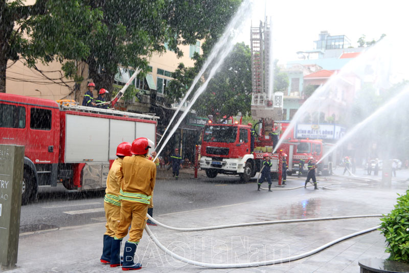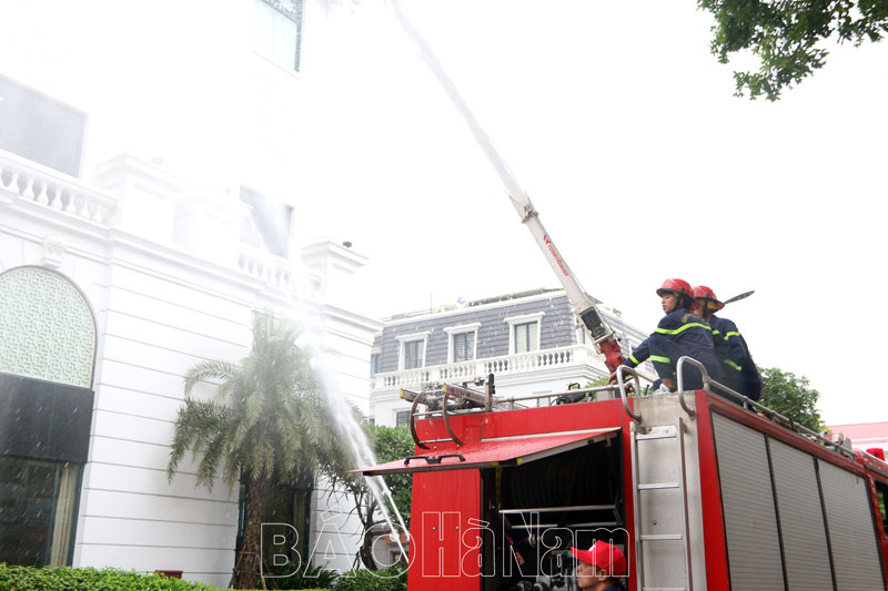Thực tập phương án chữa cháy, cứu nạn cứu hộ tại Khách sạn Vincom Plaza Phủ Lý