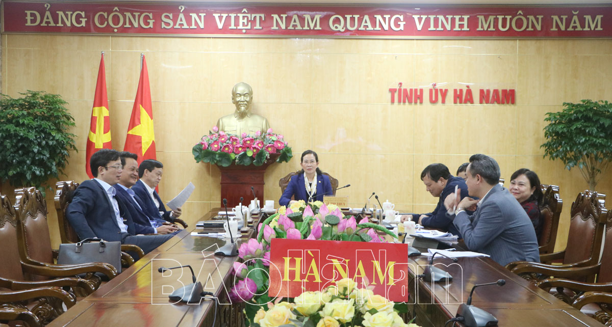 Đồng chí Lê Thị Thủy, Ủy viên Trung ương Đảng, Bí thư Tỉnh ủy, Chủ tịch HĐND tỉnh dự hội nghị tại điểm cầu Hà Nam. Cùng dự có đồng chí Đinh Thị Lụa, Phó Bí thư Thường trực Tỉnh ủy; các đồng chí Ủy viên BTV Tỉnh ủy: Đặng Đình Thoảng, Trưởng Ban Tổ chức Tỉnh ủy; Lê Thị Thanh Hà, Trưởng Ban Tuyên giáo Tỉnh ủy; Đào Đình Tùng, Trưởng Ban Nội chính Tỉnh ủy, Lê Hồng Quân, Chủ nhiệm UBKT Tỉnh ủy; lãnh đạo Ban Dân vận Tỉnh ủy, Văn phòng Tỉnh ủy.