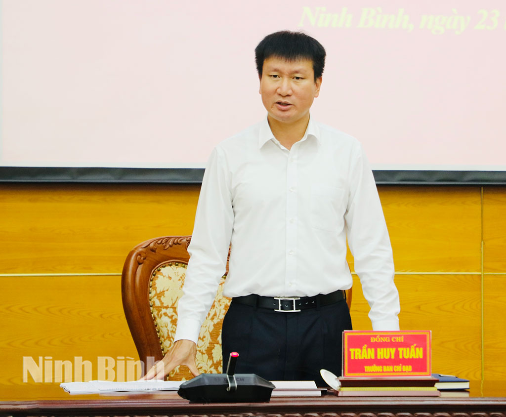 Đồng chí Trần Huy Tuấn, Ủy viên Trung ương Đảng, Bí thư Tỉnh ủy, Trưởng Ban Chỉ đạo phát biểu kết luận cuộc họp.