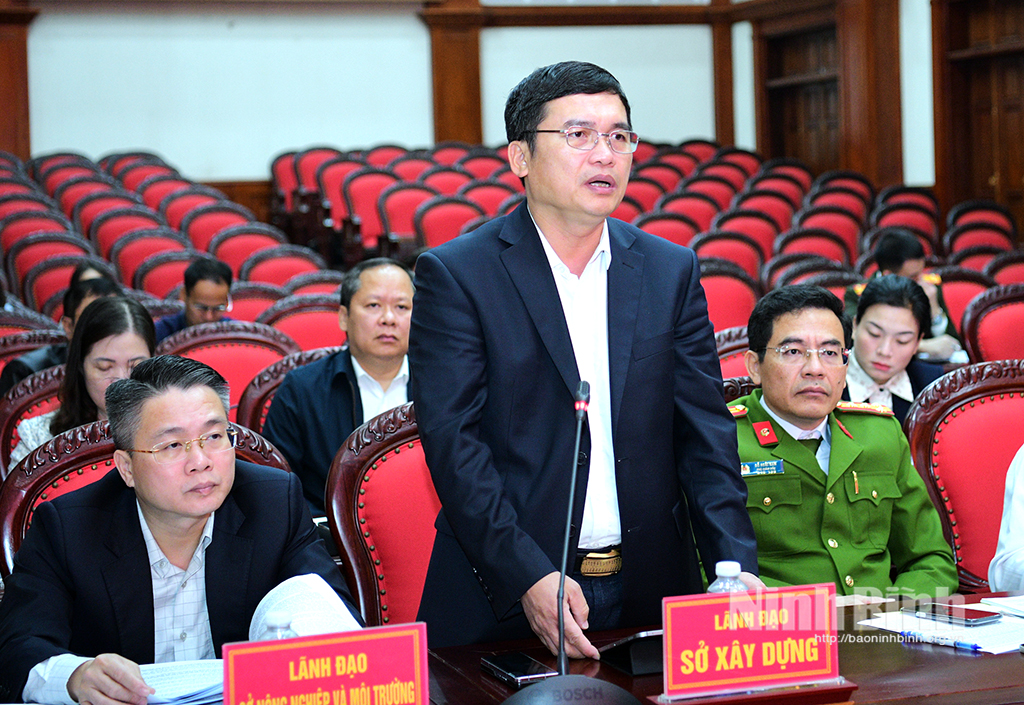Đồng chí Nguyễn Văn Lượng, Uỷ viên Ban Thường vụ Tỉnh ủy, Giám đốc Sở Xây dựng phát biểu tại phiên họp.