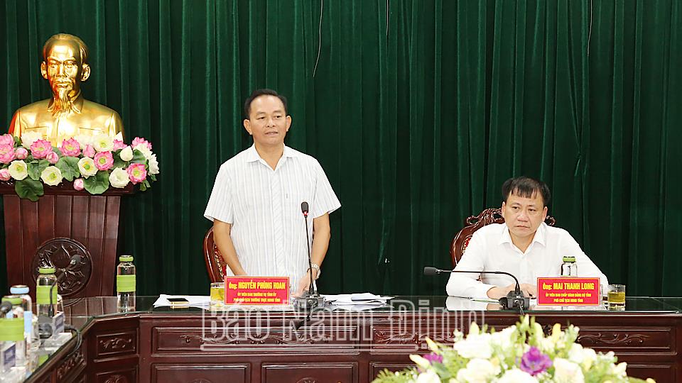 | Đồng chí Nguyễn Phùng Hoan, Ủy viên Ban TVTU, Phó Chủ tịch Thường trực HĐND tỉnh phát biểu tại buổi giám sát. |