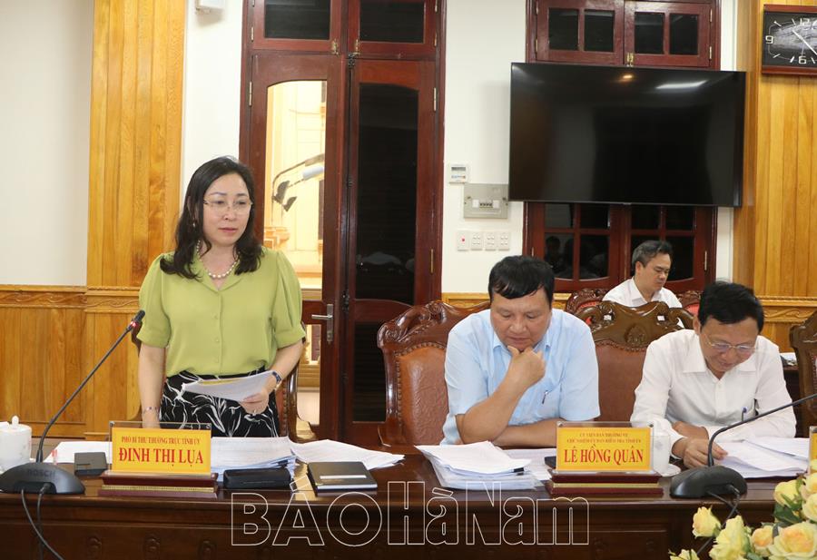 Đồng chí Đinh Thị Lụa, Phó Bí thư Thường trực Tỉnh ủy phát biểu ý kiến thảo luận.