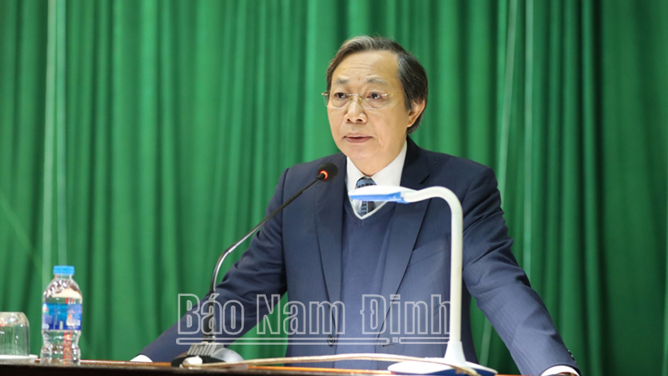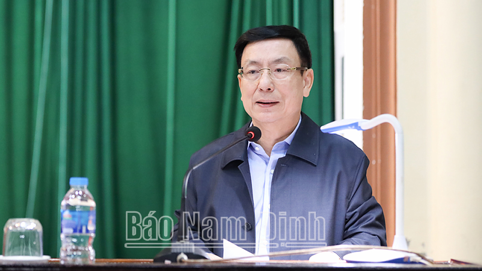 Phát biểu kết luận hội nghị, đồng chí Bí thư Tỉnh ủy Phạm Gia Túc cảm ơn các cấp ủy Đảng, chính quyền và nhân dân trong tỉnh, trong đó có các cán bộ, đảng viên trong Đảng bộ và nhân dân huyện Nghĩa Hưng cùng 4 xã Nghĩa Lâm, Nghĩa Thành, Nghĩa Hải, Nam Điền đã luôn đồng thuận, góp sức cùng tỉnh thúc đẩy phát triển kinh tế - xã hội. Đồng chí Bí thư Tỉnh ủy khẳng định, thời gian qua, việc các cấp ủy Đảng, chính quyền của tỉnh thực hiện quyết liệt, đồng bộ nhiều chương trình, hành động, trong đó có việc triển khai thực hiện các dự án của Công ty Cổ phần Tập đoàn Xuân Thiện đều nhằm mục tiêu hướng đến thúc đẩy tỉnh trở thành một trong những trung tâm phát triển công nghiệp, phấn đấu đưa Nam Định trở thành một trong những tỉnh khá của cả nước, là cực phát triển quan trọng của vùng Nam đồng bằng sông Hồng và cả nước. Vì vậy, để các dự án của Công ty Cổ phần Tập đoàn Xuân Thiện tại khu vực Cồn Xanh được khẩn trương triển khai thực hiện, sớm hoàn thành đi vào hoạt động, tạo công ăn việc làm cho người dân, góp phần phát triển kinh tế - xã hội của tỉnh, thời gian tới các cấp ủy Đảng, chính quyền của tỉnh tiếp tục huy động cả hệ thống chính trị cùng vào cuộc, với quyết tâm chính trị thúc đẩy tiến độ thực hiện các dự án theo đúng quy hoạch đã được cấp có thẩm quyền phê duyệt, kế hoạch và lộ trình đã đề ra. Chú trọng, theo sát, tuyên truyền, vận động, thuyết phục các hộ dân đồng tình, ủng hộ chủ trương của tỉnh trong việc thu hồi đất triển khai các dự án tại khu vực Cồn Xanh vì sự phát triển kinh tế - xã hội của tỉnh, của huyện Nghĩa Hưng và của chính các địa phương thuộc phạm vi dự án, vì lợi ích lâu dài của chính người dân địa phương. Đồng chí Bí thư Tỉnh uỷ cũng mong muốn các đồng chí nguyên Thường trực Huyện ủy, Ủy viên BCH Đảng bộ huyện Nghĩa Hưng; Thường trực Đảng ủy các xã Nghĩa Lâm, Nghĩa Thành, Nghĩa Hải, Nam Điền qua các thời kỳ và người dân khu vực Cồn Xanh tiếp tục ủng hộ chủ trương của tỉnh trong phát triển kinh tế - xã hội vùng ven biển; nhất là người dân tích cực chấp hành tốt chủ trương GPMB, sớm bàn giao đất cho Nhà nước tại khu vực Cồn Xanh để triển khai các dự án vì sự phát triển kinh tế - xã hội của tỉnh, của huyện Nghĩa Hưng.