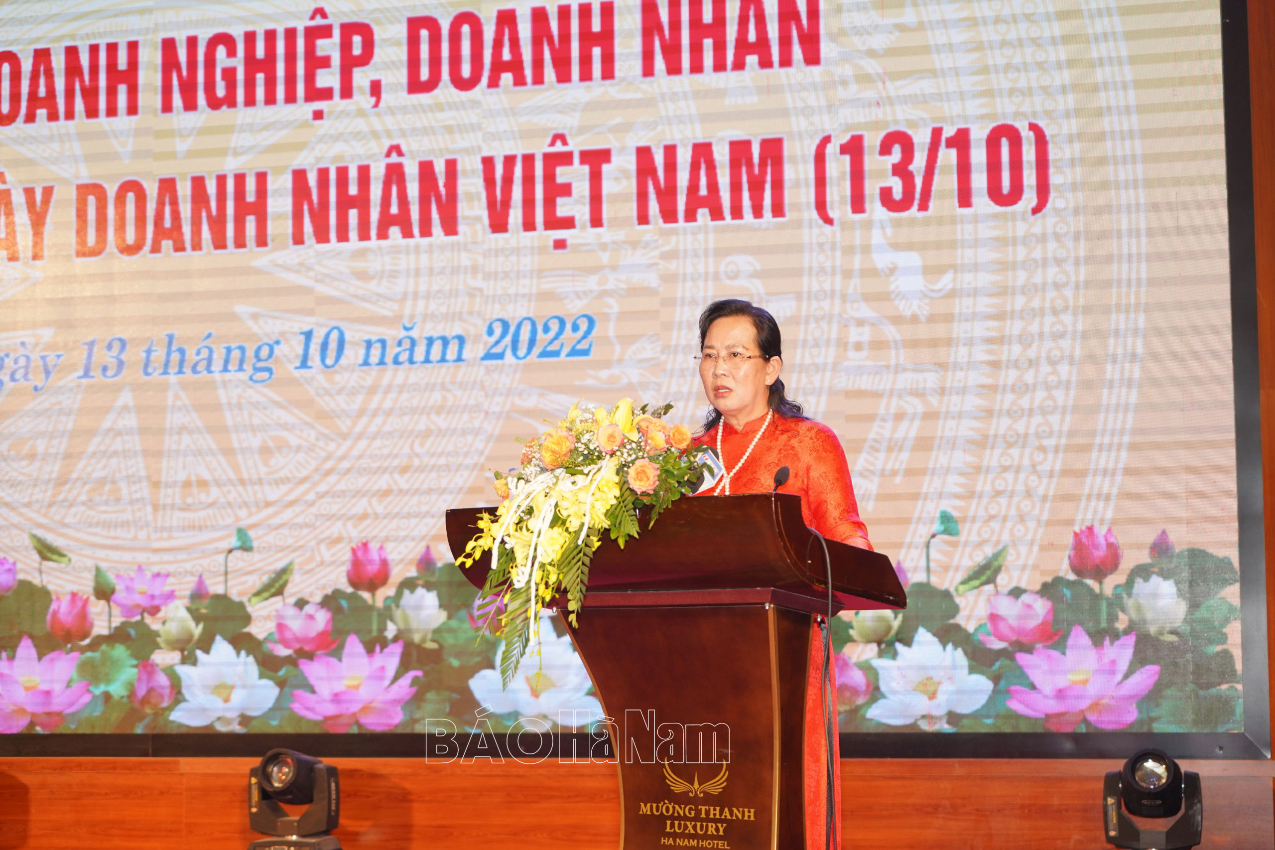 Phát biểu chúc mừng các doanh nghiệp, doanh nhân nhân Ngày Doanh nhân Việt Nam, đồng chí Lê Thị Thủy, Ủy viên Trung ương Đảng, Bí thư Tỉnh ủy, Chủ tịch HĐND tỉnh ghi nhận và biểu dương những đóng góp của cộng đồng doanh nghiệp đối với sự phát triển kinh tế - xã hội của tỉnh, đặc biệt là trong công tác phòng, chống dịch, góp phần bảo vệ sức khỏe cho nhân dân. Đồng chí Bí thư Tỉnh ủy khẳng định: Đội ngũ doanh nhân, doanh nghiệp trên địa bàn tỉnh ngày càng phát triển lớn mạnh và đã có những đóng góp to lớn vào sự phát triển kinh tế - xã hội, đảm bảo an sinh xã hội tại địa phương. Đội ngũ doanh nhân là những người tạo ra của cải vật chất cho xã hội, tạo việc làm cho người lao động, đóng góp cho sự phát triển của tỉnh; doanh nghiệp, doanh nhân phát triển thì tỉnh mới phát triển vì vậy cấp ủy, chính quyền các địa phương, các sở, ban ngành của tỉnh luôn quan tâm, tạo điều kiện tốt nhất để doanh nghiệp toàn tâm, toàn ý phát triển và hội nhập.