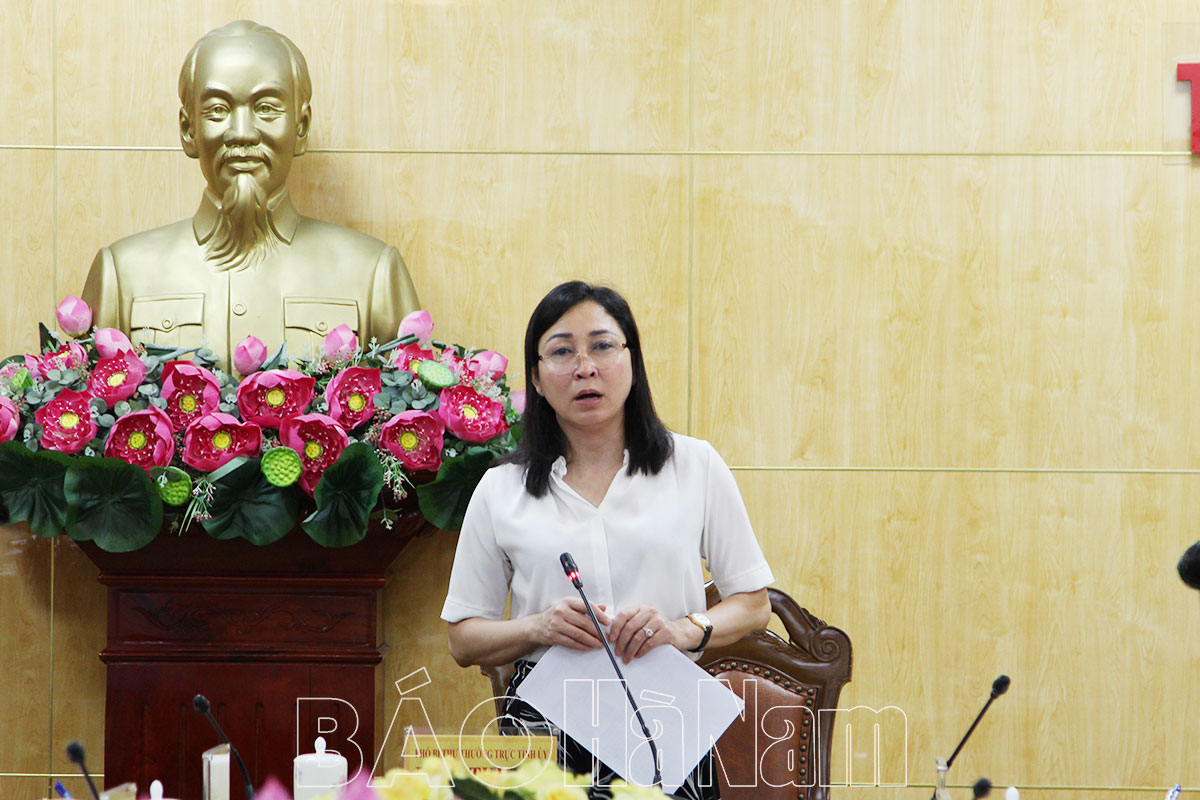 Đồng chí Đinh Thị Lụa, Phó Bí thư Thường trực Tỉnh ủy phát biểu kết luận hội nghị giao ban.