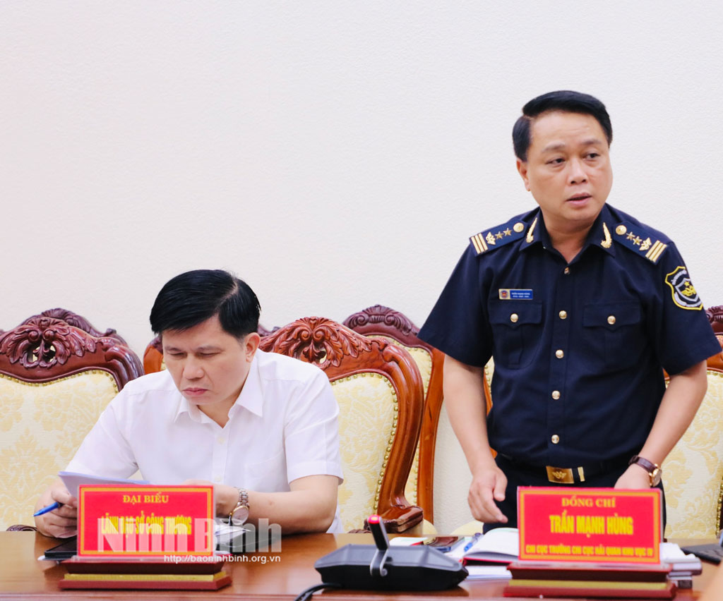 Đồng chí Nguyễn Xuân Sơn, Tỉnh ủy viên, Chánh án Tòa án nhân dân tỉnh phát biểu tại hội nghị.Đồng chí Trần Mạnh Hùng, Chi cục trưởng Chi cục Hải quan khu vực IV phát biểu tại hội nghị.