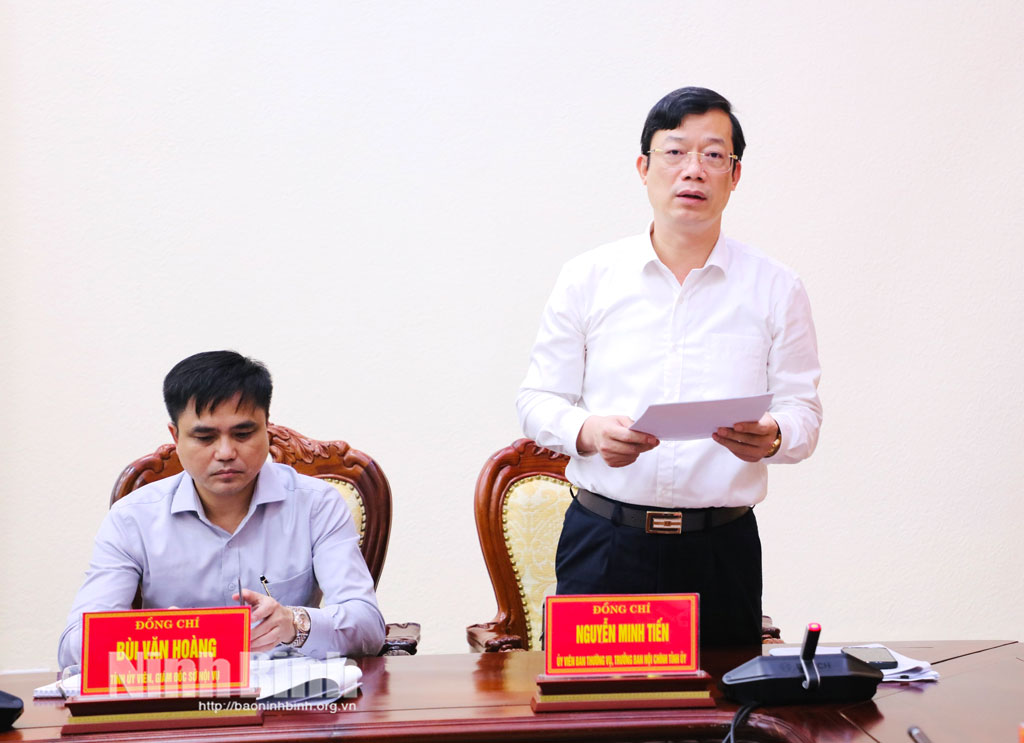 Đồng chí Nguyễn Minh Tiến, Ủy viên Ban Thường vụ Tỉnh ủy, Trưởng Ban Nội chính Tỉnh ủy phát biểu tại hội nghị.