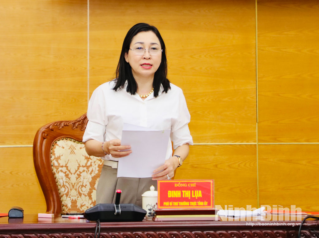 Đồng chí Đinh Thị Lụa, Phó Bí thư Thường trực Tỉnh ủy phát biểu kết luận hội nghị.
