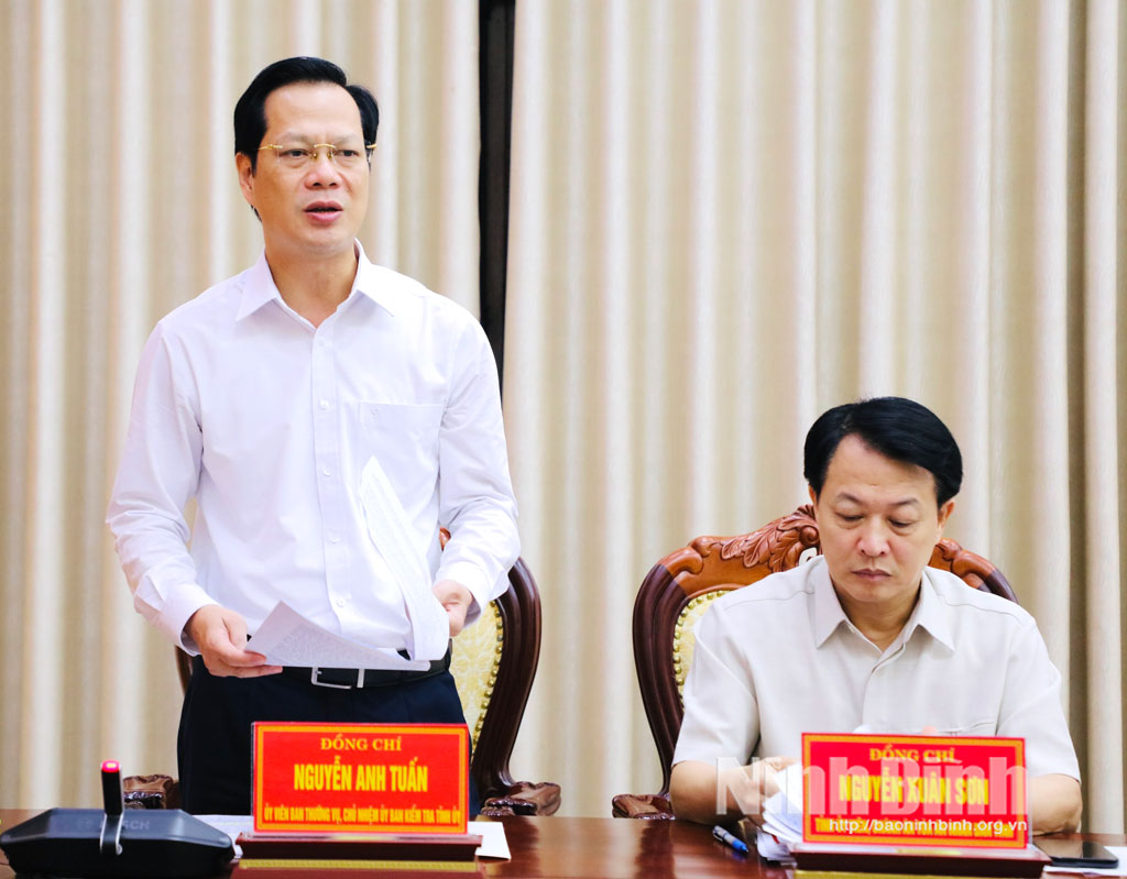 Đồng chí Nguyễn Anh Tuấn, Ủy viên Ban Thường vụ Tỉnh ủy, Chủ nhiệm Ủy ban Kiểm tra Tỉnh ủy phát biểu tại hội nghị.