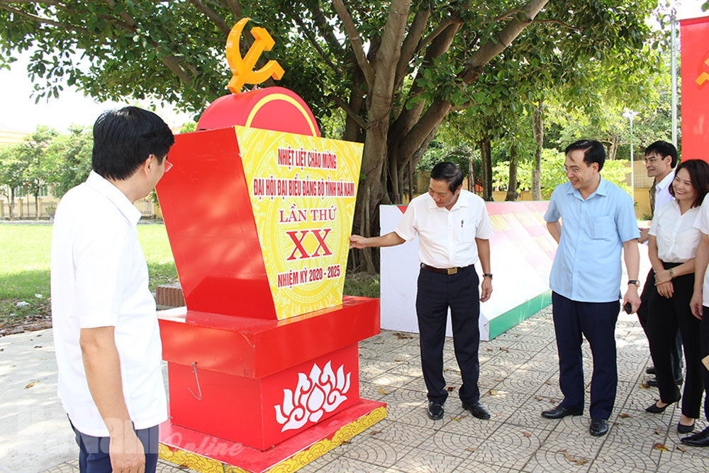 Kiểm tra thực tế một số địa điểm, tuyến đường và làm việc trực tiếp với lãnh đạo các địa phương, đồng chí Lê Thị Thủy, Ủy viên Trung ương Đảng, Bí thư Tỉnh ủy ghi nhận, biểu dương công tác tuyên truyền Đại hội Đảng bộ tỉnh lần thứ XX của thị xã Duy Tiên, huyện Lý Nhân, thành phố Phủ Lý. Đồng thời, đề nghị các địa phương tiếp tục đẩy mạnh công tác tuyên tuyền với nhiều hình thức; tăng cường tuyên truyền trực quan, bổ sung pano, cờ, hoa tại một số địa điểm, nhất là đầu mối giao thông dẫn vào trung tâm tỉnh, huyện, xã, phường. Cùng đó, đẩy mạnh các phong trào thi đua; đảm bảo an ninh trật tự, an toàn giao thông; tăng cường công tác tiếp dân, nắm tình hình dư luận, giải quyết kịp thời những vấn đề phát sinh, không để xảy ra bị động, bất ngờ.