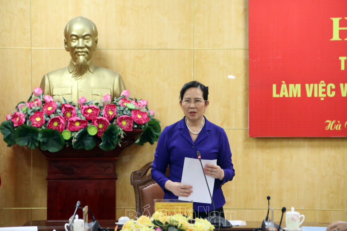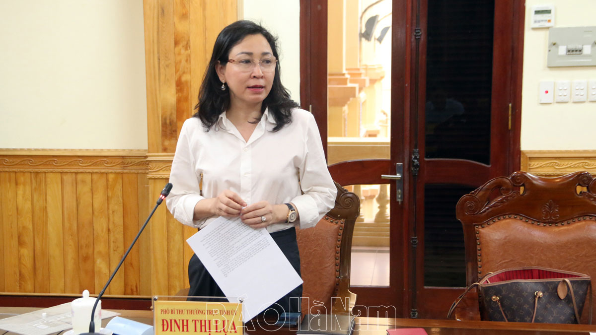 Đồng chí Đinh Thị Lụa, Phó Bí thư Thường trực Tỉnh ủy phát biểu tại hội nghị.