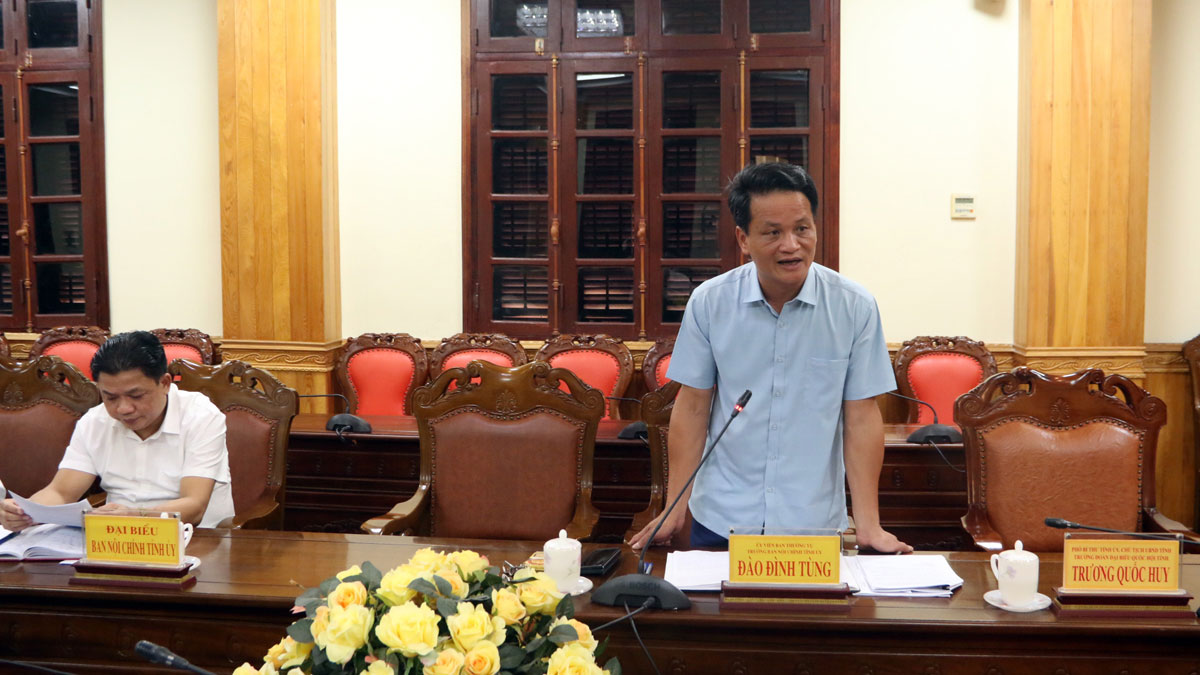 Đồng chí Đào Đình Tùng, Ủy viên Ban Thường vụ Tỉnh ủy, Trưởng Ban Nội chính Tỉnh ủy phát biểu ý kiến tại buổi làm việc.