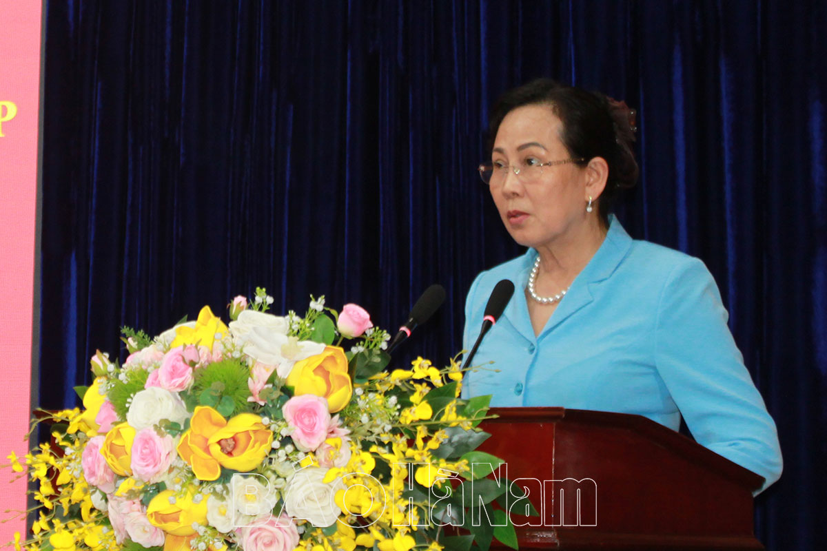 Đồng chí Lê Thị Thủy, Ủy viên Trung ương Đảng, Bí thư Tỉnh ủy, Chủ tịch HĐND tỉnh phát biểu chỉ đạo hội nghị.