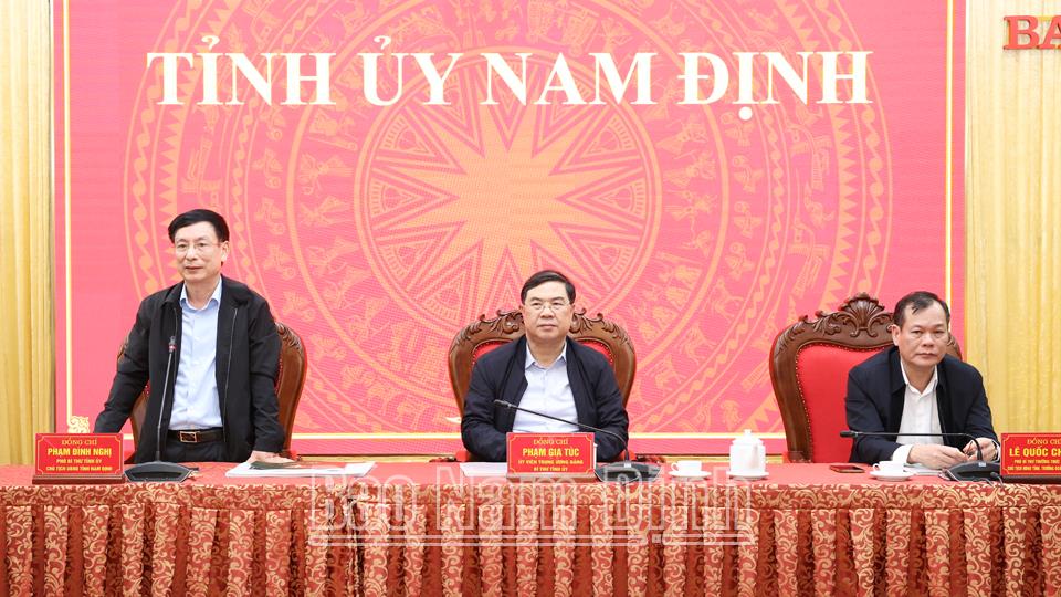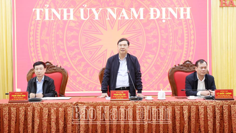 Đồng chí Phạm Gia Túc, Ủy viên BCH Trung ương Đảng, Bí thư Tỉnh ủy phát biểu chỉ đạo tại buổi làm việc.
