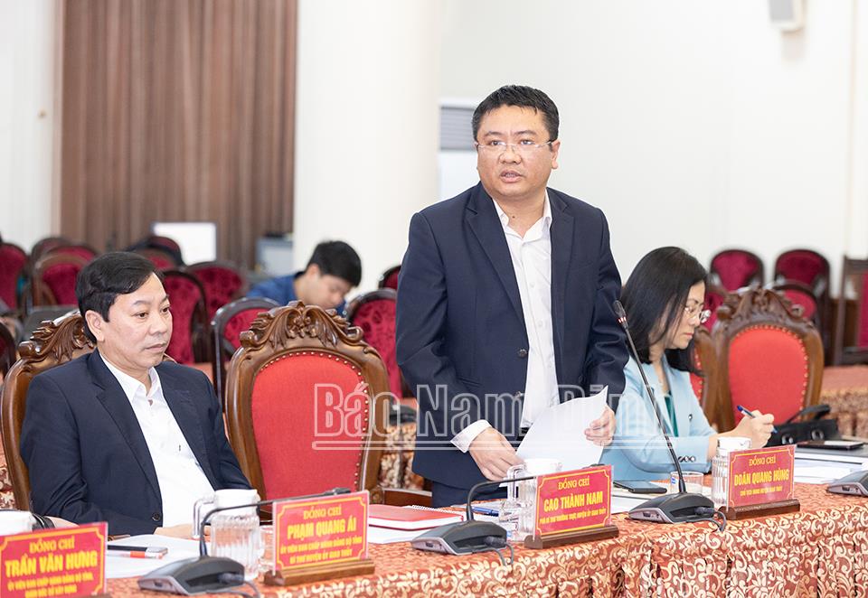 Đồng chí Doãn Quang Hùng, Chủ tịch UBND huyện Giao Thủy phát biểu tại buổi làm việc.