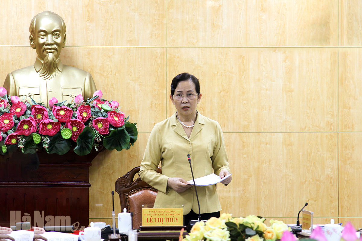 Đồng chí Lê Thị Thủy, Ủy viên Trung ương Đảng, Bí thư Tỉnh ủy, Chủ tịch HĐND tỉnh phát biểu kết luận hội nghị.
