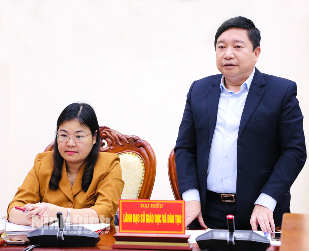 Từ tình hình thực tế, tỉnh Ninh Bình đề ra 8 nhóm nhiệm vụ, giải pháp trọng tâm để thực hiện hiệu quả Nghị quyết số 71-NQ/TW của Bộ Chính trị. Đó là tiếp tục nâng cao nhận thức, đổi mới tư duy và hành động, xác định quyết tâm chính trị mạnh mẽ để đột phá phát triển giáo dục và đào tạo. Đổi mới mạnh mẽ thể chế, tạo cơ chế, chính sách đặc thù, vượt trội cho phát triển giáo dục và đào tạo. Tăng cường giáo dục toàn diện đức, trí, thể, mỹ, hình thành hệ giá trị con người Việt Nam thời đại mới. Chuyển đổi số toàn diện, phổ cập và ứng dụng mạnh mẽ công nghệ số, trí tuệ nhân tạo trong giáo dục và đào tạo. Tập trung xây dựng đội ngũ nhà giáo, cơ sở vật chất trường lớp đạt chuẩn, nâng cao chất lượng giáo dục mầm non và phổ thông. Cải cách, hiện đại hóa giáo dục nghề nghiệp, tạo đột phá phát triển nguồn nhân lực có kỹ năng nghề cao. Hiện đại hóa, nâng tầm giáo dục đại học, tạo đột phá phát triển nhân lực trình độ cao và nhân tài, dẫn dắt nghiên cứu, đổi mới sáng tạo. Ninh Bình tiếp tục đẩy mạnh hợp tác và hội nhập quốc tế sâu rộng trong giáo dục và đào tạo.