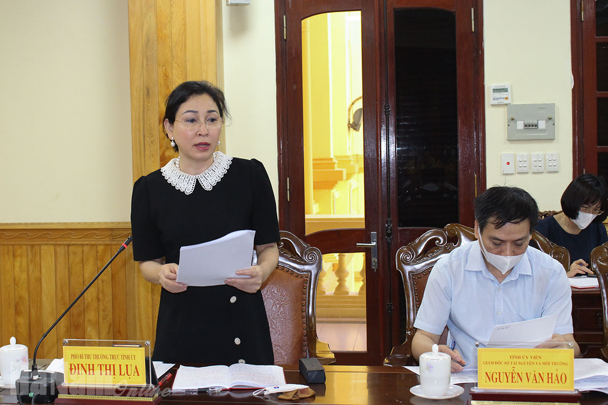 Đồng chí Đinh Thị Lụa, Phó Bí thư Thường trực Tỉnh ủy phát biểu ý kiến tại hội nghị.