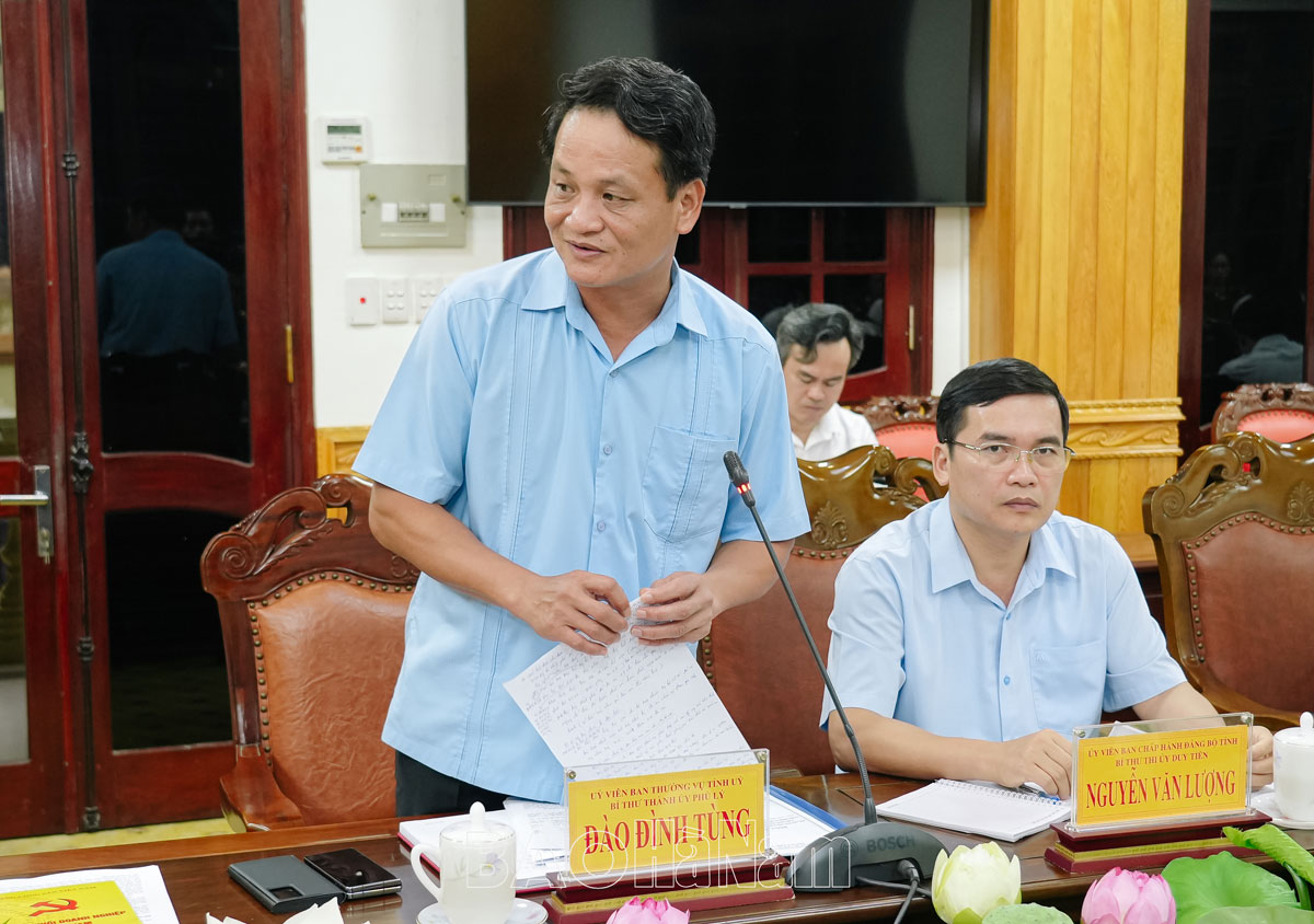 Đồng chí Đào Đình Tùng, Ủy viên BTV Tỉnh ủy, Bí thư Thành ủy Phủ Lý phát biểu tại hội nghị.