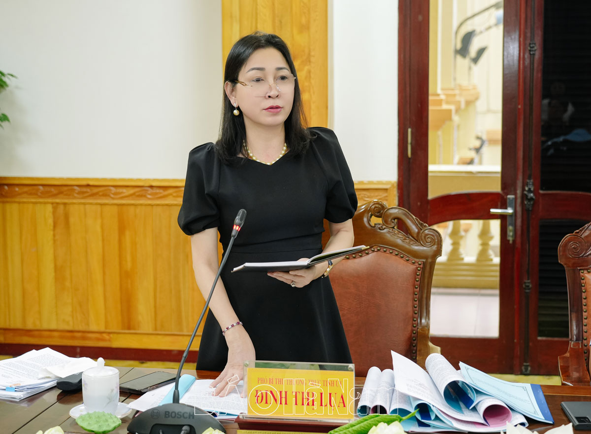 Đồng chí Đinh Thị Lụa, Phó Bí thư Thường trực Tỉnh ủy phát biểu tại hội nghị.