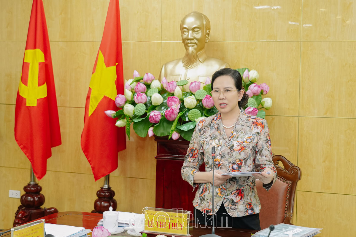 Đồng chí Lê Thị Thủy, Ủy viên Trung ương Đảng, Bí thư Tỉnh ủy, Chủ tịch HĐND tỉnh phát biểu kết luận hội nghị.