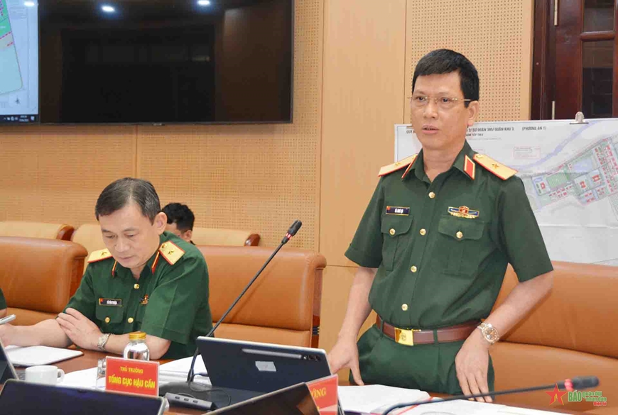 | Thiếu tướng Hà Như Lợi, Phó chủ nhiệm Tổng cục Hậu cần phát biểu tại buổi làm việc. |