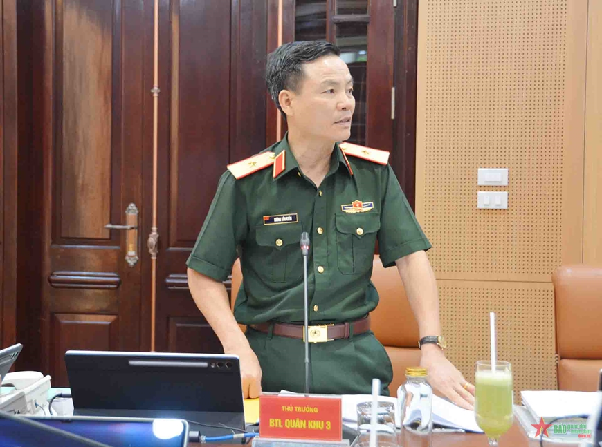 | Thiếu tướng Lương Văn Kiểm, Phó tư lệnh Quân khu 3 phát biểu tại buổi làm việc. |