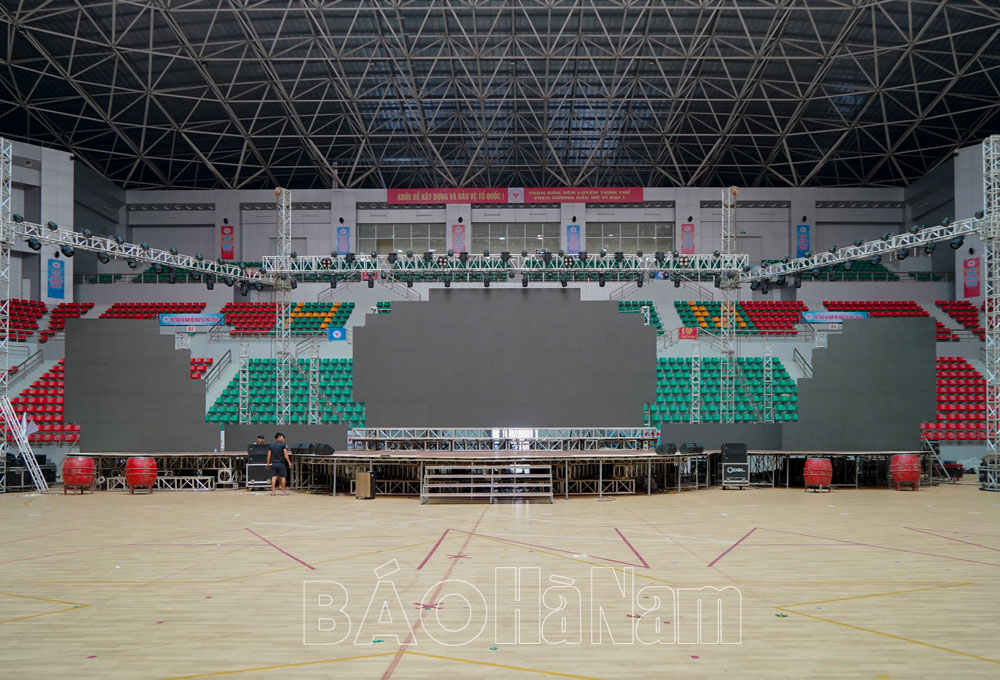 Theo ghi nhận của phóng viên Báo Hà Nam điện tử, trong khuôn viên nhà thi đấu, không khí chuẩn bị đang được gấp rút hoàn thành các hạng mục phục vụ cho Lễ khai mạc. Không khí luyện tập của các khối lực lượng diễu hành và đồng diễn diễn ra sôi nổi.