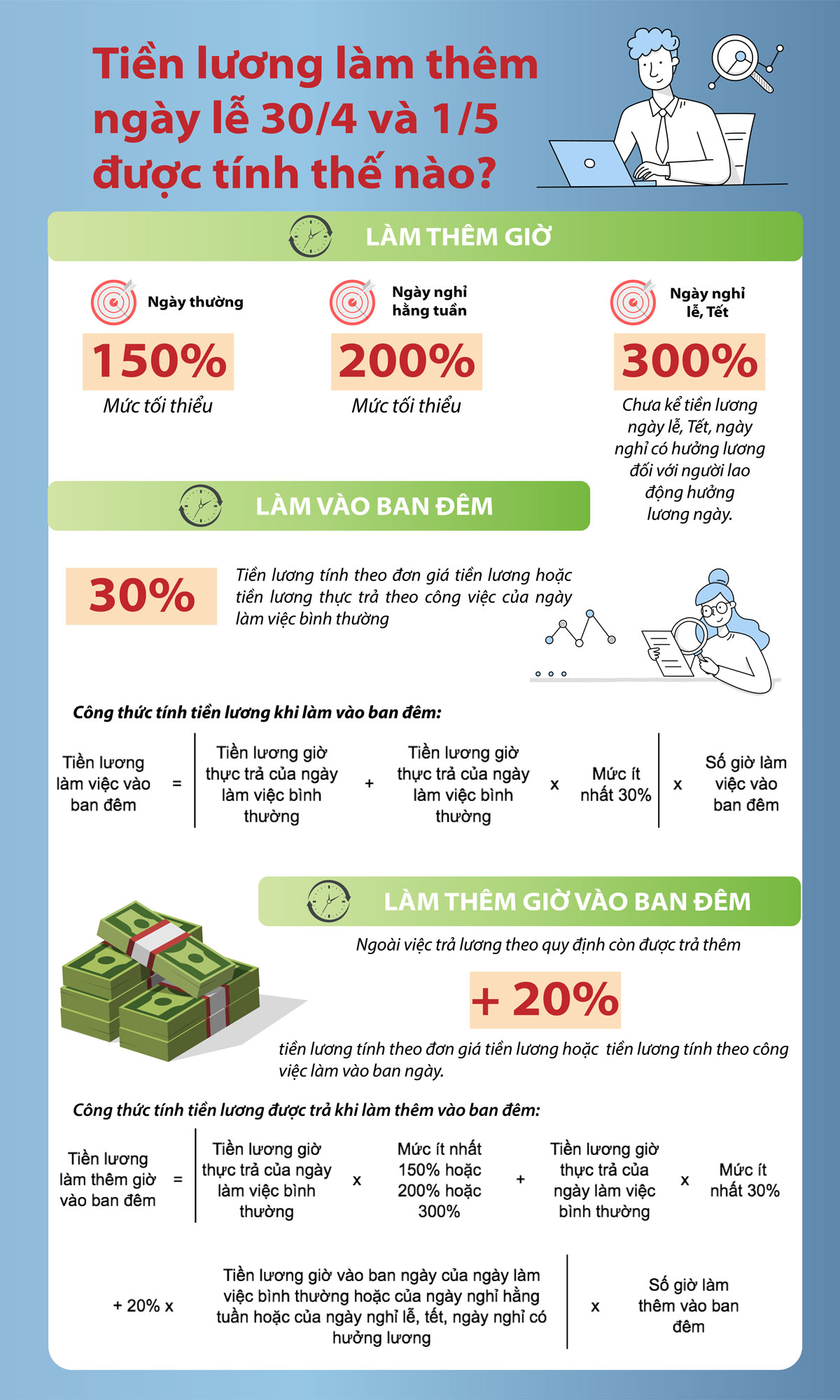 Tiền lương làm thêm ngày lễ 30/4 và 1/5 được tính thế nào?