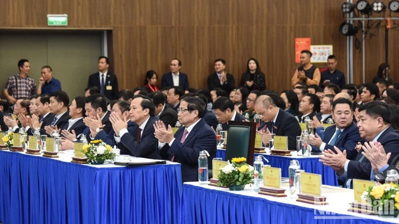 | Thủ tướng Phạm Minh Chính và lãnh đạo các bộ, ngành, đại biểu tham dự hội nghị. |
