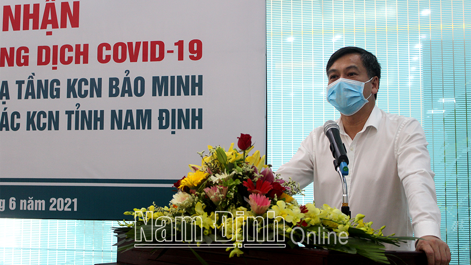 Phát biểu tại lễ tiếp nhận, đồng chí Phó Chủ tịch UBND tỉnh ghi nhận đóng góp của các doanh nghiệp sản xuất trong KCN Bảo Minh và trong các KCN của tỉnh; đề nghị các doanh nghiệp tiếp tục chung sức với toàn xã hội tham gia ủng hộ công tác phòng, chống dịch COVID-19, tạo thêm nguồn lực thúc đẩy quá trình kiểm soát dịch bệnh, góp phần để các doanh nghiệp nhanh chóng ổn định sản xuất, kinh doanh, thúc đẩy phát triển kinh tế - xã hội./.