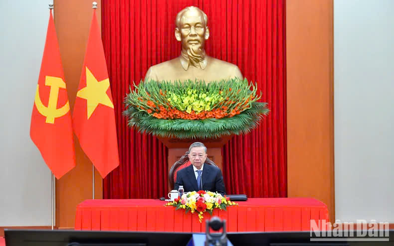 Tại cuộc điện đàm, Tổng Bí thư Tô Lâm thông tin một số nét về tình hình Việt Nam gần đây, trong đó có việc Việt Nam đang nỗ lực phấn đấu hoàn thành các mục tiêu Đại hội XIII đề ra và tích cực chuẩn bị tổ chức Đại hội Đảng lần thứ XIV. Đồng chí Tô Lâm cũng chia sẻ một số chủ trương, quyết sách lớn của Đảng, Nhà nước Việt Nam để đưa đất nước tiến vào kỷ nguyên mới - kỷ nguyên vươn mình của dân tộc Việt Nam.