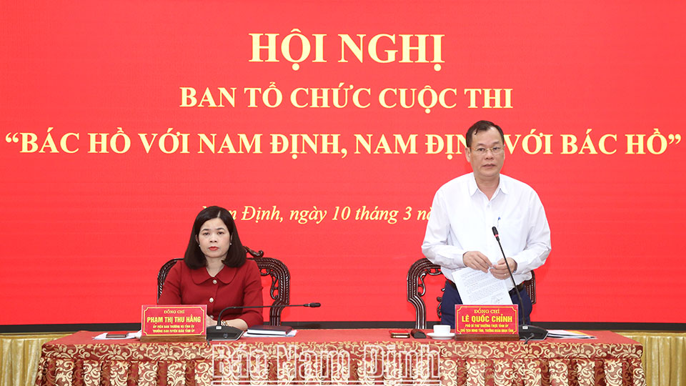 Phát biểu kết luận hội nghị, đồng chí Phó Bí thư Thường trực Tỉnh ủy Lê Quốc Chỉnh ghi nhận và đánh giá cao việc triển khai cuộc thi đã bám sát mục đích, yêu cầu kế hoạch đề ra, nhất là công tác tuyên truyền, phát động rộng rãi trong cấp ủy Đảng, chính quyền, MTTQ và các tổ chức chính trị - xã hội các cấp, thu hút đông đảo cán bộ, đảng viên và nhân dân tích cực hưởng ứng tham gia. Đây là dịp để các cấp ủy, tổ chức Đảng, cán bộ, đảng viên và nhân dân nhận thức đầy đủ, sâu sắc hơn về giá trị cốt lõi của tư tưởng, đạo đức, phong cách Hồ Chí Minh; những tình cảm sâu nặng của Bác Hồ đối với Đảng bộ, chính quyền và nhân dân tỉnh ta và tình cảm của Đảng bộ, chính quyền và nhân dân tỉnh ta với Bác Hồ. Nâng cao niềm tự hào, hăng hái thi đua, nêu cao tinh thần trách nhiệm, gương mẫu trong học tập và làm theo Bác của cán bộ, đảng viên và nhân dân trong tỉnh, góp phần thực hiện thắng lợi Nghị quyết Đại hội Đảng bộ tỉnh lần thứ XX và nghị quyết đại hội Đảng bộ các cấp, nhiệm kỳ 2020-2025. Đồng chí yêu cầu, thành viên Ban Tổ chức cuộc thi tiếp tục nêu cao tinh thần trách nhiệm, phối hợp chặt chẽ trong quá trình thực hiện nhiệm vụ được phân công; nâng cao chất lượng cuộc thi, góp phần vào thành công chuỗi sự kiện kỷ niệm 60 năm ngày Bác Hồ về thăm Đảng bộ và nhân dân tỉnh Nam Định./.
