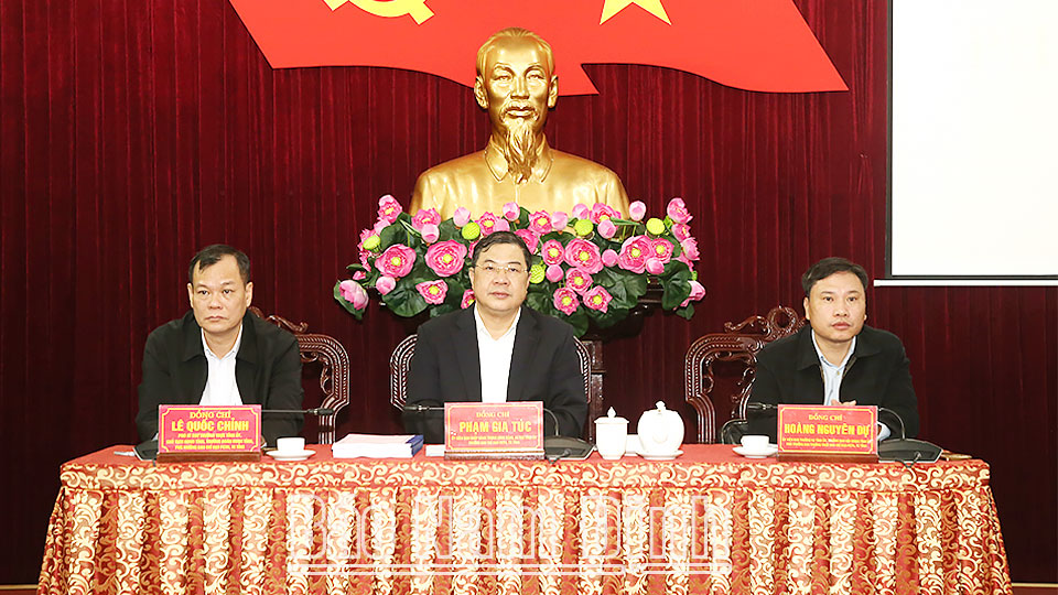 | Đồng chí Phạm Gia Túc, Ủy viên BCH Trung ương Đảng, Bí thư Tỉnh ủy, Trưởng Ban Chỉ đạo phòng, chống tham nhũng, tiêu cực tỉnh phát biểu tại phiên họp. |