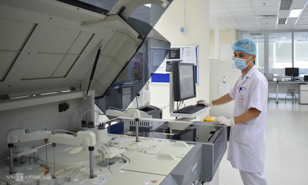 Nhân viên y tế Bệnh viện Bệnh nhiệt đới Trung ương vận hành hệ thống xét nghiệm.