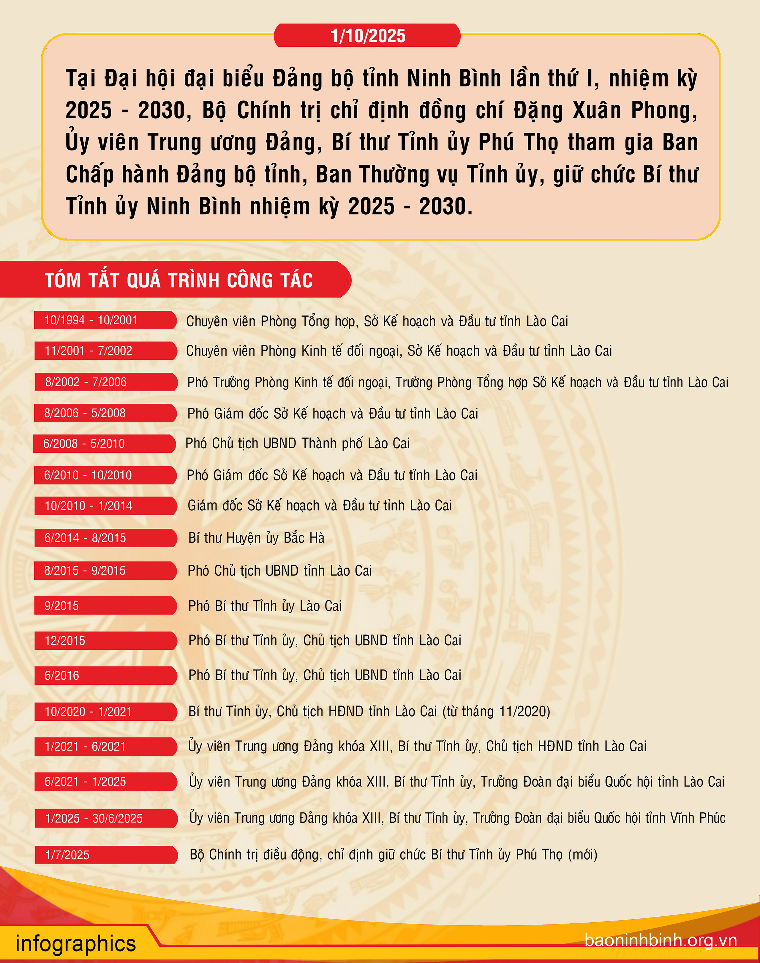 Tiểu sử đồng chí Đặng Xuân Phong, Bí thư Tỉnh ủy Ninh Bình, nhiệm kỳ 2025-2030