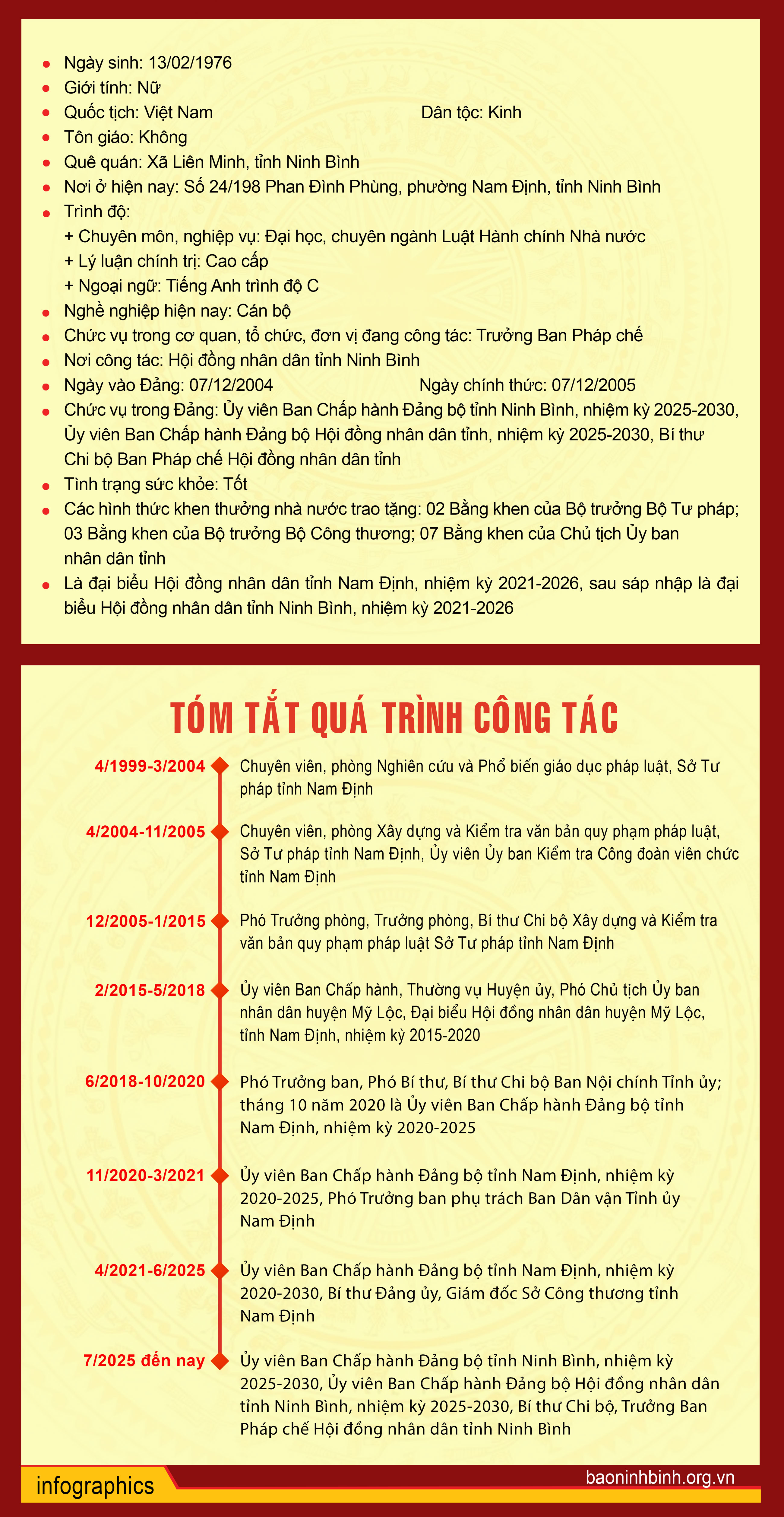 Tiểu sử tóm tắt người ứng cử đại biểu Hội đồng nhân dân tỉnh Ninh Bình nhiệm kỳ 2026-2031 (Đơn vị bầu cử số 19)