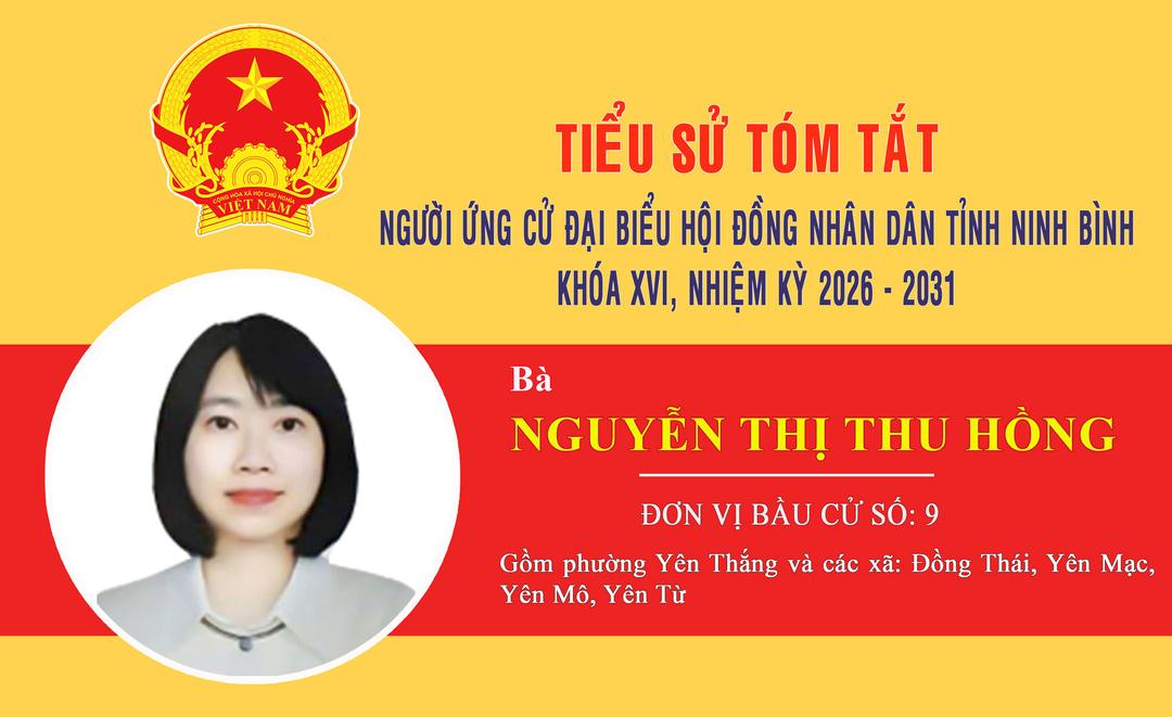 Tiểu sử tóm tắt người ứng cử đại biểu Hội đồng nhân dân tỉnh Ninh Bình nhiệm kỳ 2026-2031 (Đơn vị bầu cử số 20)