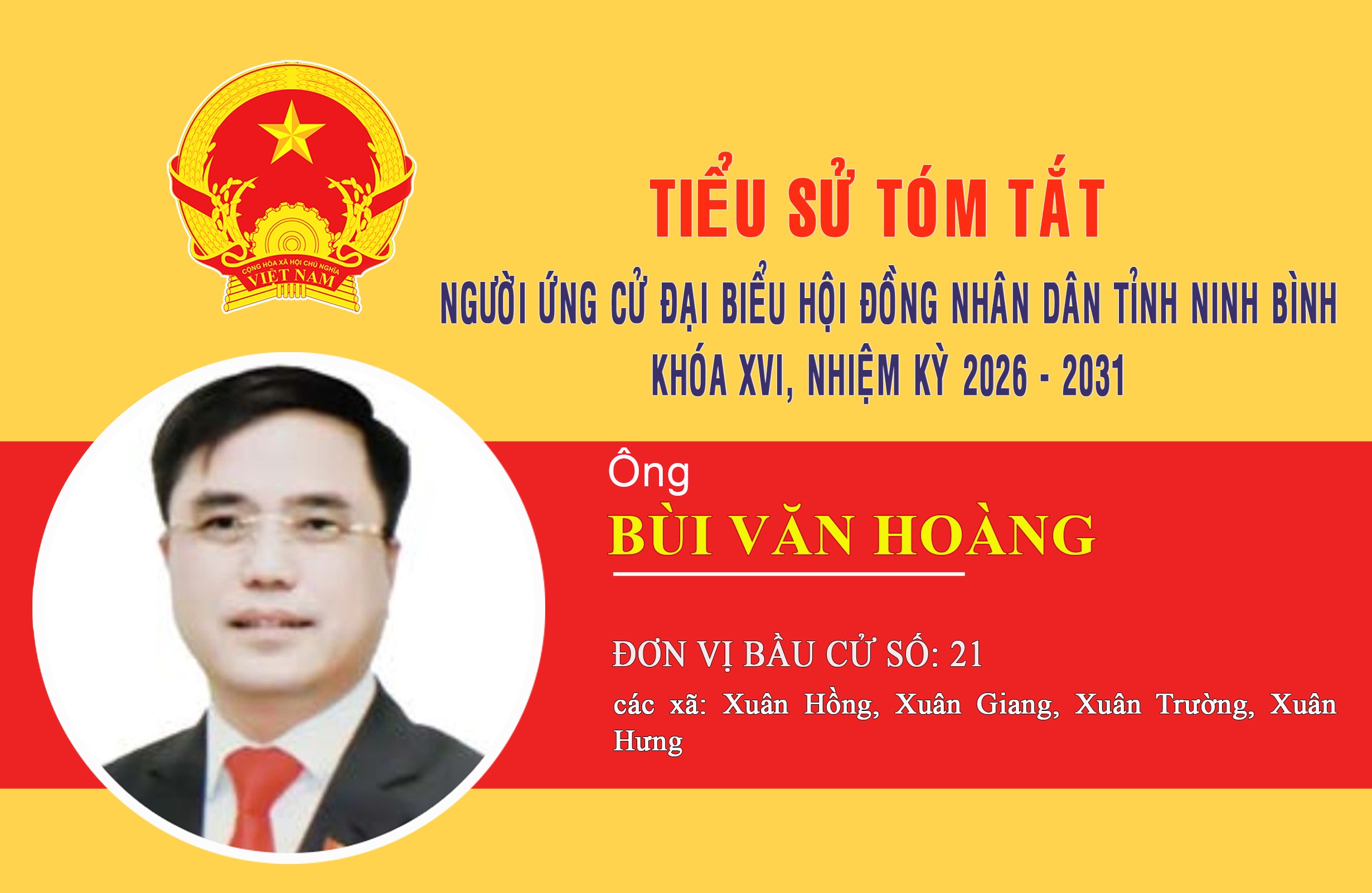 Tiểu sử tóm tắt người ứng cử đại biểu Hội đồng nhân dân tỉnh Ninh Bình nhiệm kỳ 2026-2031 (Đơn vị bầu cử số 21)
