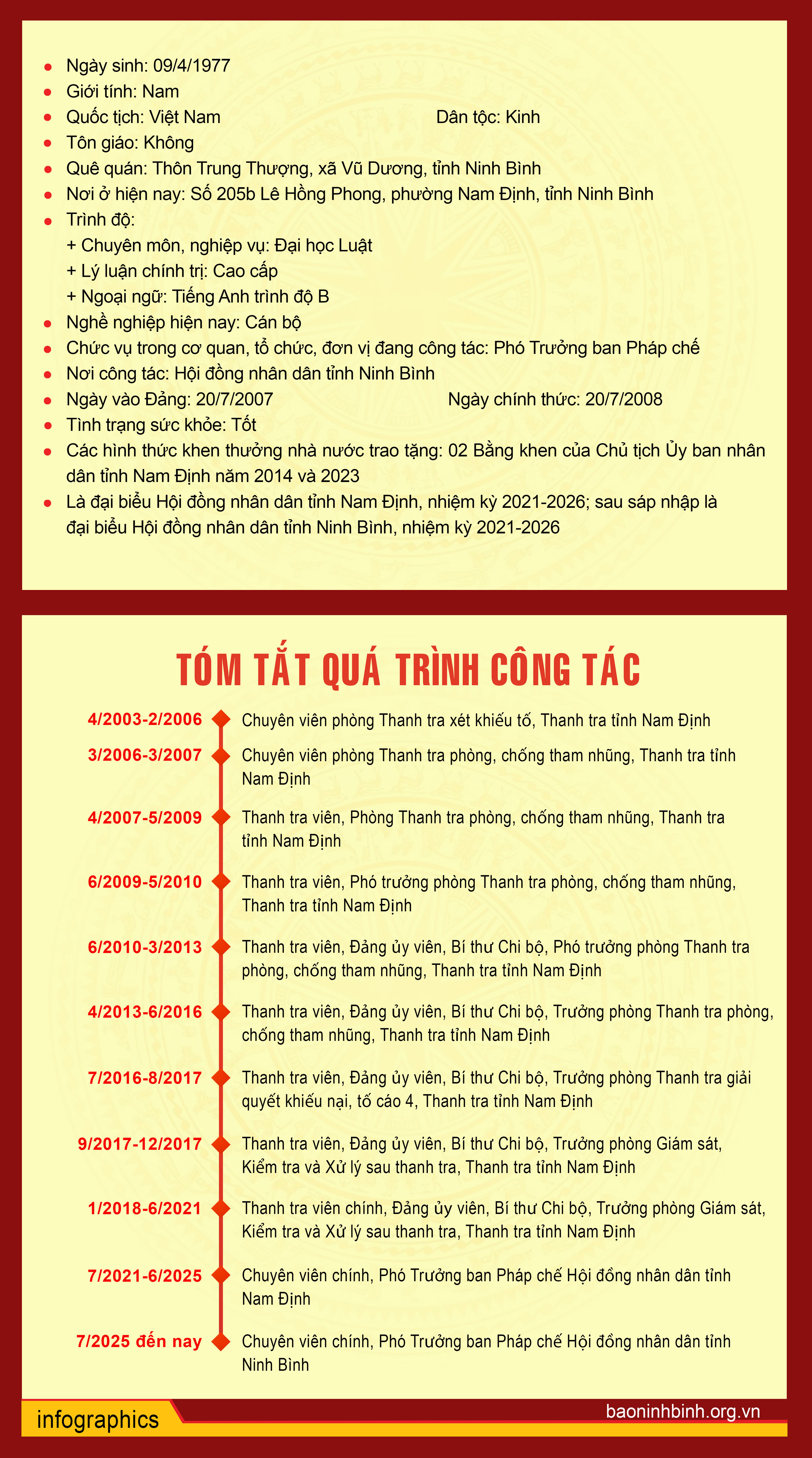 Tiểu sử tóm tắt người ứng cử đại biểu Hội đồng nhân dân tỉnh Ninh Bình nhiệm kỳ 2026-2031 (Đơn vị bầu cử số 12)