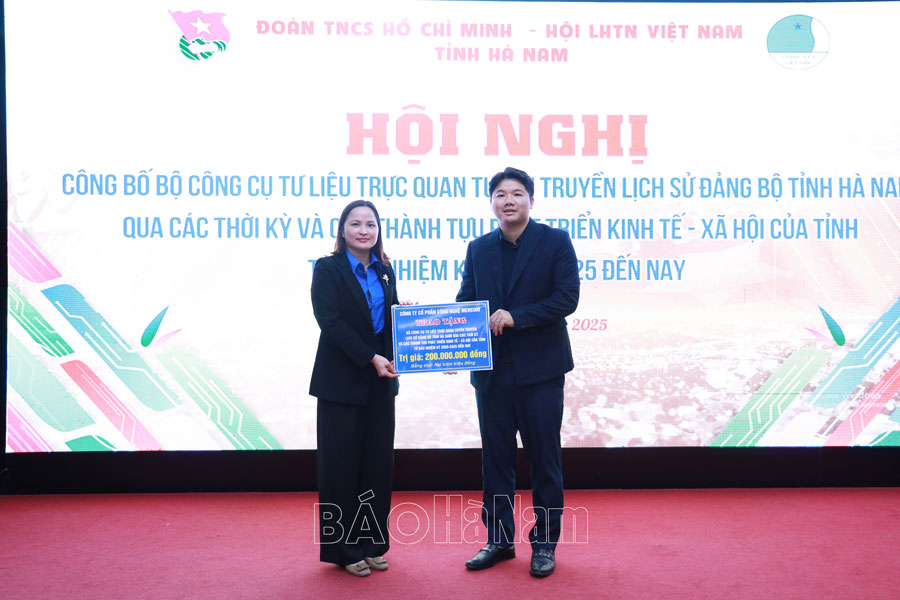Tại hội nghị, đại diện Công ty cổ phần Công nghệ Mercury Việt Nam đã trao tặng cho Tỉnh đoàn Hà Nam biển tượng trưng Bộ công cụ Tư liệu trực quan tuyên truyền Lịch sử Đảng bộ tỉnh qua các thời kỳ và thành tựu phát triển kinh tế - xã hội của tỉnh từ đầu nhiệm kỳ 2020 - 2025 đến nay, trị giá 200 triệu đồng.
