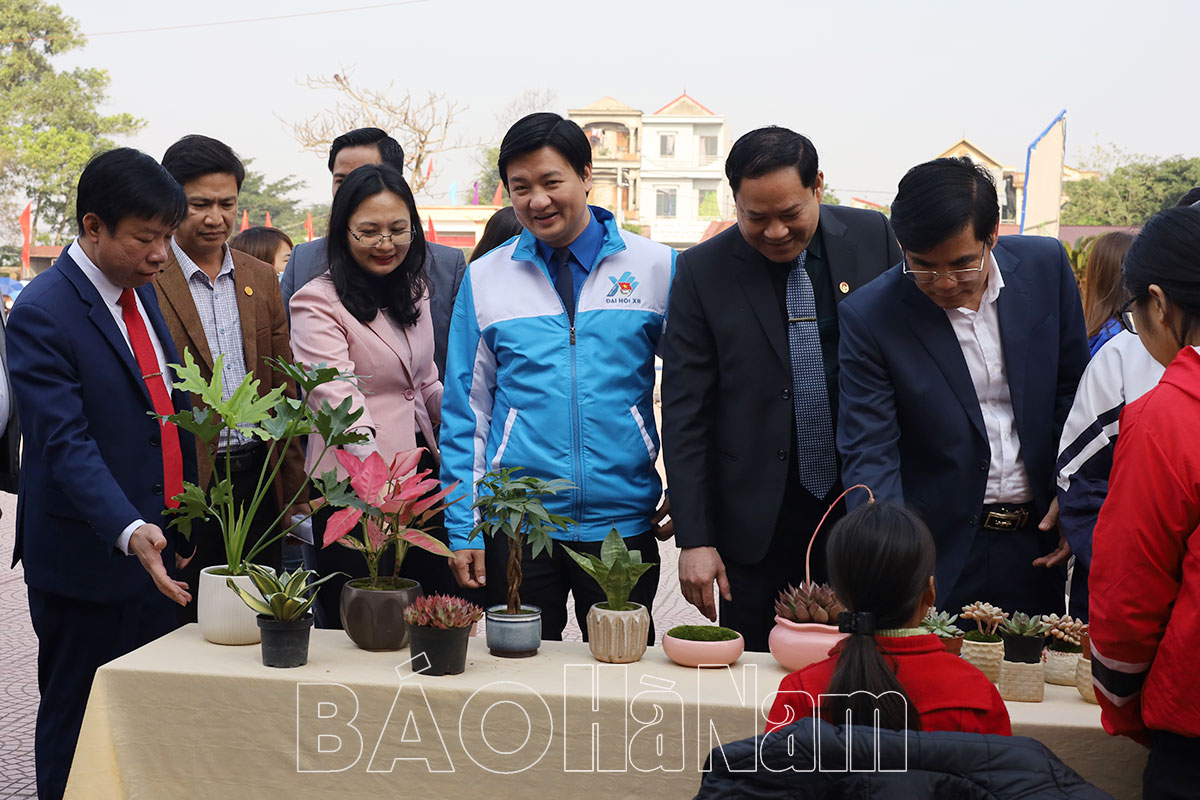Các em học sinh khó khăn Trường THPT C Bình Lục được tặng quà từ Ban Tổ chức.Các đại biểu tham gia một số hoạt động trong khuôn khổ Lễ khởi động Tháng Thanh niên năm 2023.