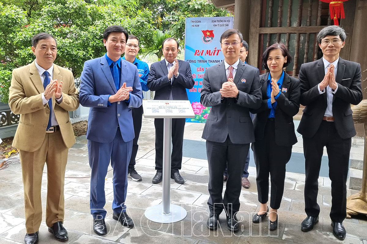 Đại diện BTV Tỉnh đoàn Hà Nam và Đoàn Trường ĐH Kinh tế Quốc dân ký kết chương trình phối hợp hoạt động năm 2022.Ra mắt công trình thanh niên số hóa, gắn mã QR giới thiệu khu di tích lịch sử Đền thờ 10 nữ liệt sỹ dân quân Lam Hạ.