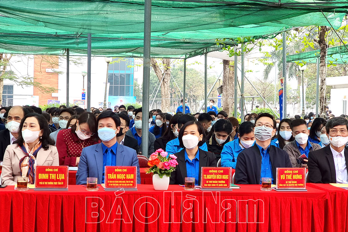 Tại ngày hội, các đại biểu cùng đông đảo đoàn viên thanh niên Trường ĐH Kinh tế Quốc dân, Trường THPT Chuyên Biên Hòa cùng ôn lại truyền thống 91 năm xây dựng, phát triển và trưởng thành của Đoàn TNCS Hồ Chí Minh. Tại đây, Ban Thường vụ (BTV) Tỉnh đoàn đã trao tặng 1 công trình thanh niên “Thắp sáng đường quê” trị giá 50 triệu đồng cho Huyện đoàn Thanh Liêm và trao tặng 5 thùng đựng rác thân thiện, chế phẩm ứng dụng phương pháp vi sinh bản địa IMO để xử lý môi trường trị giá 15 triệu đồng cho Đoàn xã Thanh Hương. BTV Đoàn Trường ĐH Kinh tế Quốc dân trao tặng công trình “Hàng cây thanh niên cho Đoàn Trường THPT Chuyên Biên Hòa trị giá 30 triệu đồng. Công ty Trống Hoàng Gia, Hội Đồng đội tỉnh trao tặng 6 bộ trống đội cho Hội đồng Đội các huyện, thị xã, thành phố.