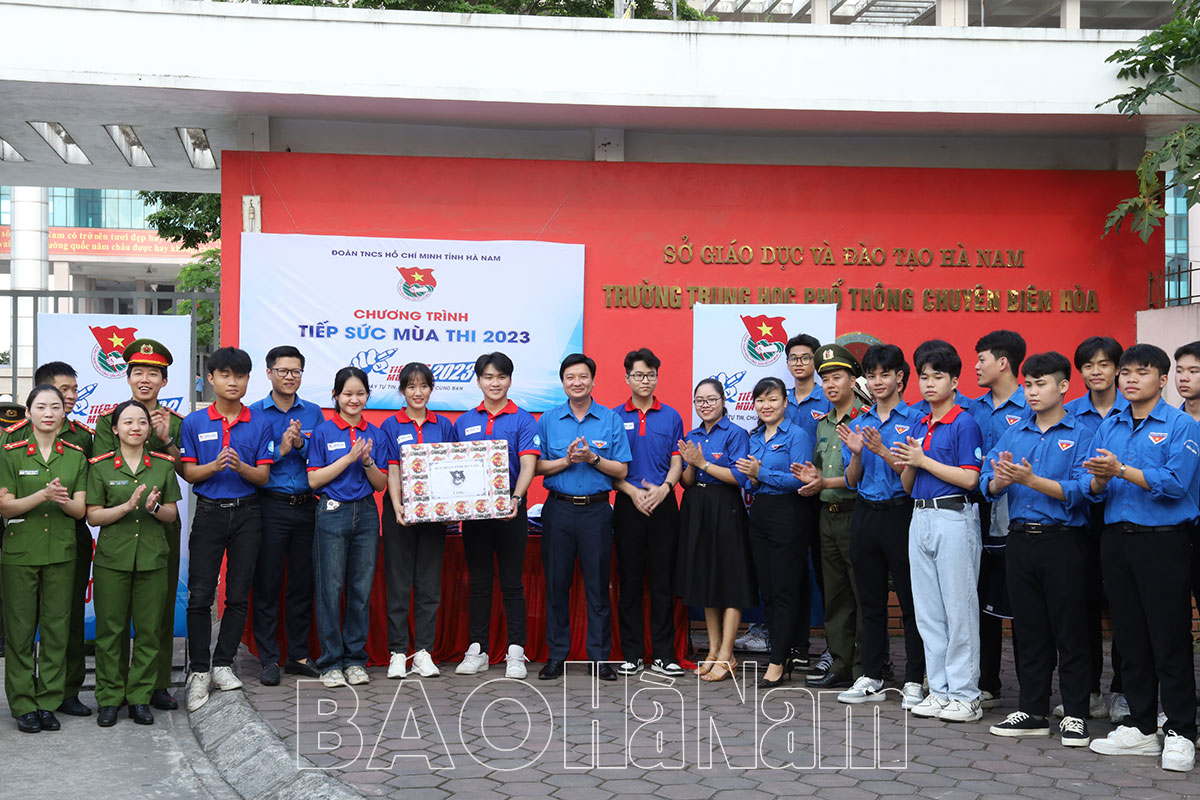 Sáng 29/5, tại Trường THPT chuyên Biên Hòa, Tỉnh đoàn tổ chức xuất quân các đội hình tiếp sức mùa thi năm 2023. Chương trình có sự tham gia của gần 100 tình nguyện viên đến từ các đơn vị: Đoàn Trường THPT chuyên Biên Hòa, Công an TP Phủ Lý, Đoàn phường Thanh Châu, Đoàn phường Liêm Chính thuộc Thành đoàn Phủ Lý.