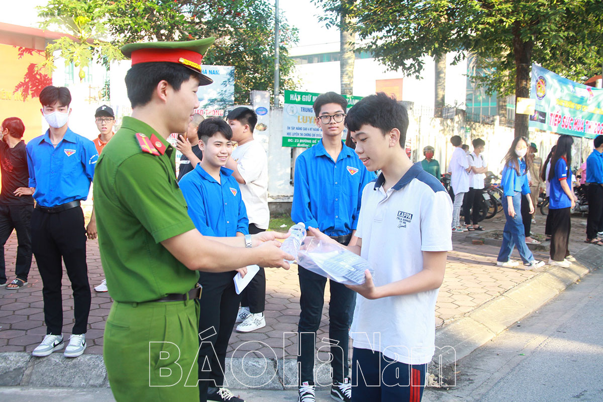 Theo đó, các đội thanh niên tình nguyện tham gia hướng dẫn thí sinh những vật dụng được phép mang vào phòng thi, hỗ trợ thí sinh về bút viết, nước uống, động viên tâm lý cho thí sinh trước khi bước vào phòng thi; hướng dẫn, phân luồng đảm bảo an toàn giao thông tại khu vực điểm thi...